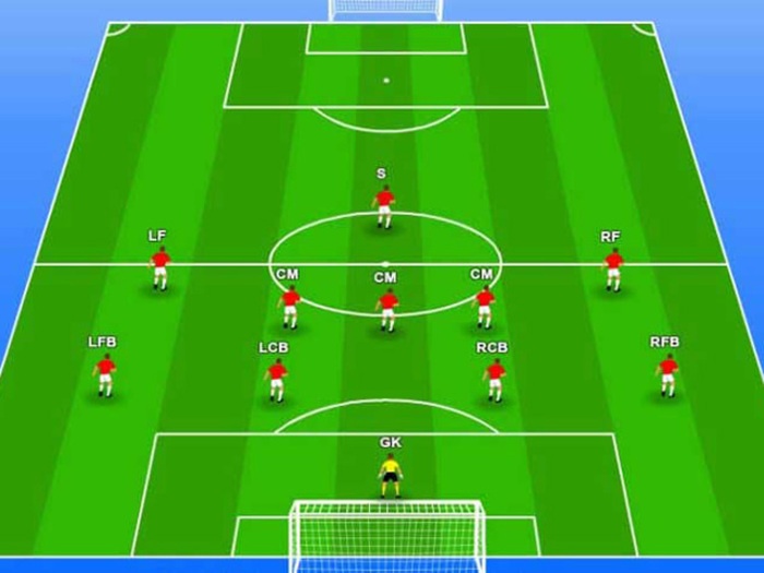 • 5 tiền vệ: Thường bao gồm 2 tiền vệ trung tâm (CM/CDM), 2 tiền vệ cánh (LM/RM) và 1 tiền vệ công (CAM) đá phía sau tiền đạo.